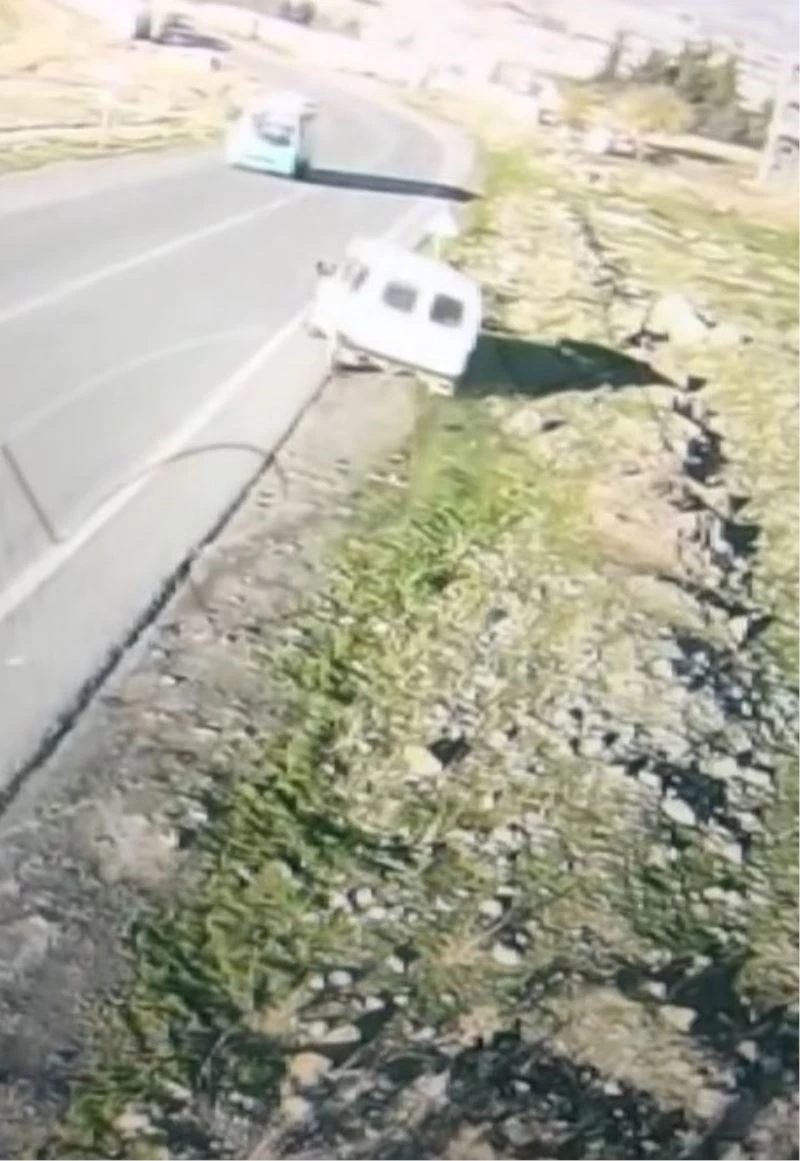 Öte yandan kaza anı güvenlik kamerası tarafından kaydedildi. Görüntülerde, minibüs ve otobüsün seyrettiği, minibüsün direksiyon hakimiyetini kaybederek şeridinde giden halk otobüsüne çarptığı görüldü.