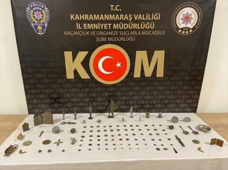 KAHRAMANMARAŞ - Kahramanmaraş'ın Dulkadiroğlu ilçesinde, 109 parça tarihi eser olduğu değerlendirilen sikke, heykelcik ve obje ele geçirildi.