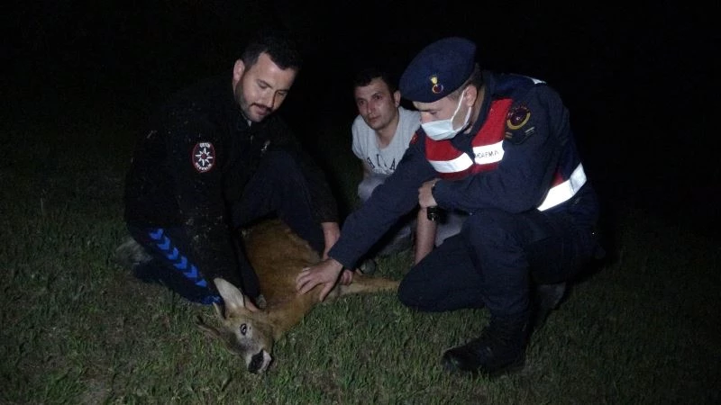 Kalbi duran yaralı karacaya suni teneffüs ve kalp masajı yaptılar