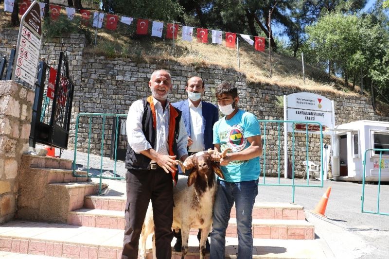 Kalenin restorasyonunun tamamlandığında koç keseceğini söyleyen Mustafa Karaaslan, kurbanlık koç ile kaleye geldi.