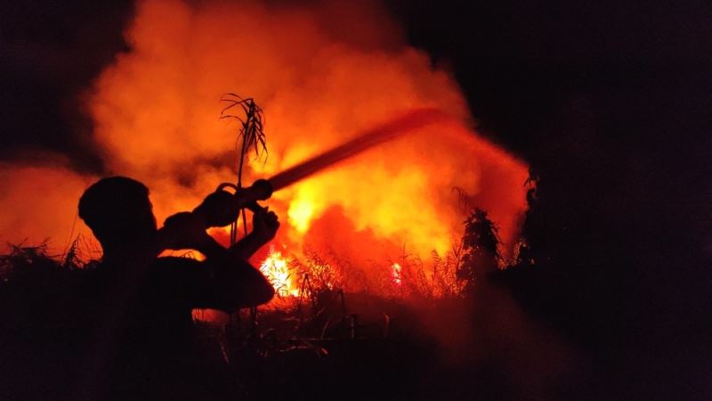 Kamışlık alandaki yangın korkuttu