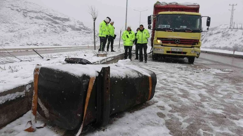 Edinilen bilgiye göre kaza, Tokat çevreyolunda kar yağışı ve sonrasında oluşan buzlanma nedeni ile meydana geldi. Diyarbakır’dan Yalova’ya kamyonla katır götüren Cuma Tunç (58) idaresindeki 72 AR 060 plakalı Mercedes marka kamyon, sürücüsünün direksiyon hakimiyetini kaybetmesi sonucu refüje çarptı. Refüjden karşı yöne geçen kamyon devrilmeden durabildi. Karşı yönden gelen başka bir aracın olmaması büyük bir kazayı önledi. Çarpmanın etkisi ile kamyonun yedek mazot deposu yola savruldu. Maddi hasarla atlatılan kaza sonrasında polis ekipleri yolda güvenlik olarak ilgili inceleme başlattı.