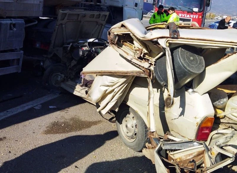Kamyona çarpan otomobil kağıt gibi ezildi: 1 yaralı
