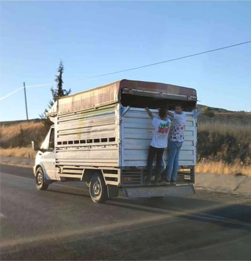 Daha sonra, seyir halindeki diğer araç sürücüleri tarafından yapılan uyarılar üzerine kamyonetin durdurularak, gençlerin arkasından indirildiği öğrenildi.