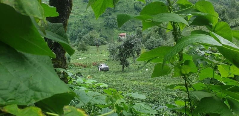 Rize’nin Çamlıhemşin ilçesinde freni boşalan araç 150 metreden çay bahçesine yuvarlandı, araç içerisindeki çift kazayı burunları kanamadan atlattı.
