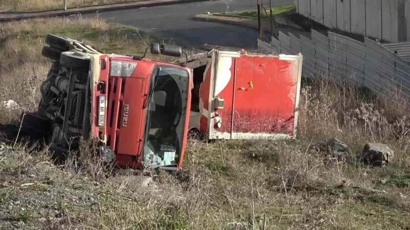 Başakşehir’de içinde dondurulmuş gıdaların bulunduğu kamyonet kontrolden çıkınca çayırlık alana devrildi. Emniyet kemeri taktığı için ölümden dönen sürücü, hafif yaralı şekilde hastaneye kaldırıldı.