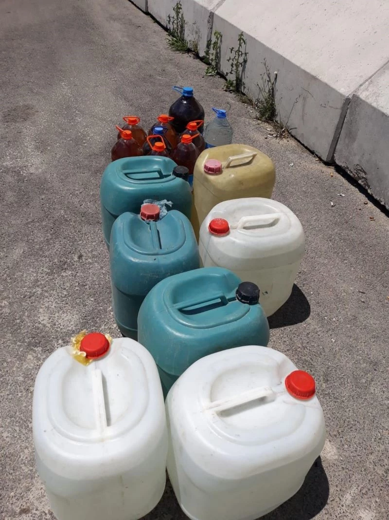 Hatay’ın Belen ilçesinde kontrol noktasında durdurulan kamyonetin kasası içerisindeki gizli bölmeden 240 litre sahte içki çıktı.