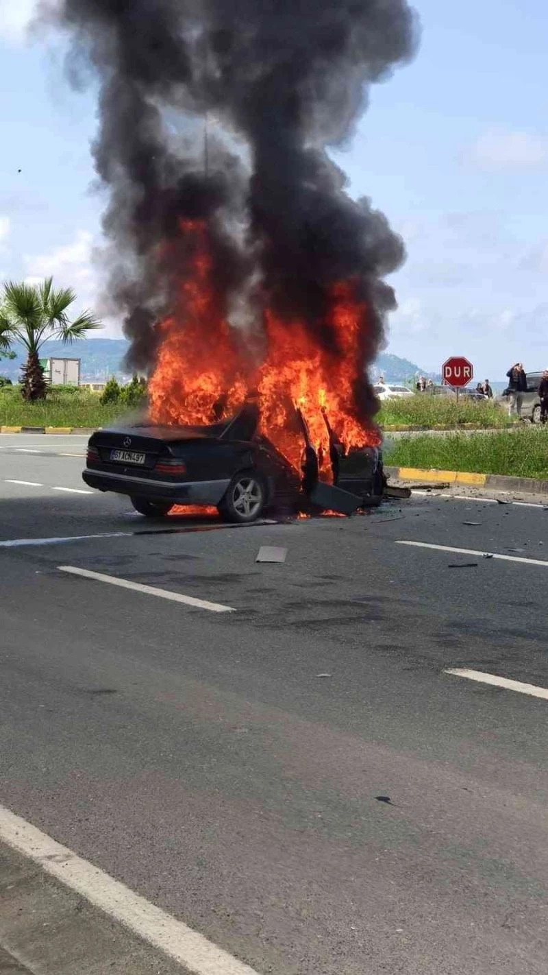 Alınan bilgiye göre, ilçenin Balıklı mahallesi Liman Kavşağı’ndan yola girmeye çalışan ve sürücüsü henüz tespit edilemeyen 61 SF 878 plakalı kamyonet ile yolda seyir halinde olan 61 ANC 497 plakalı otomobil çarpıştı. Çarpmanın etkisiyle kamyonetin devrildiği kazada, otomobil bir anda alev aldı. Çevredeki vatandaşların müdahalesi ile yanan otomobilin içinden sürücü son anda çıkartılırken, olay yerine itfaiye ve polis ekipleri sevk edildi. Yanan otomobil, itfaiye ekiplerinin müdahalesiyle söndürülürken, iki aracın sürücüsü kazayı hafif sıyrıklarla atlattı. Kaza nedeniyle bir süre trafiğe kapatılan yol, araçların kaldırılmasının ardından tekrar ulaşıma açıldı. Kazayla ilgili inceleme sürüyor.