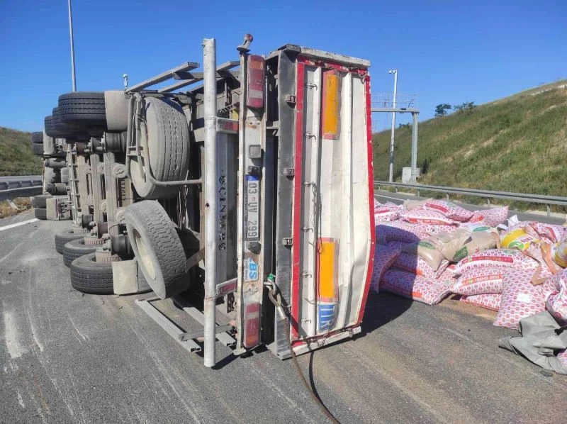 Kuzey Marmara Otoyolu Yassıören yol ayrımında bir kamyonet ile tırın karıştığı kaza sonrasında kamyonet takla attı, tır ise yan yattı. Tırda bulunan yemlerin yola saçılması nedeniyle otoyol bir süre trafiğe kapandı.