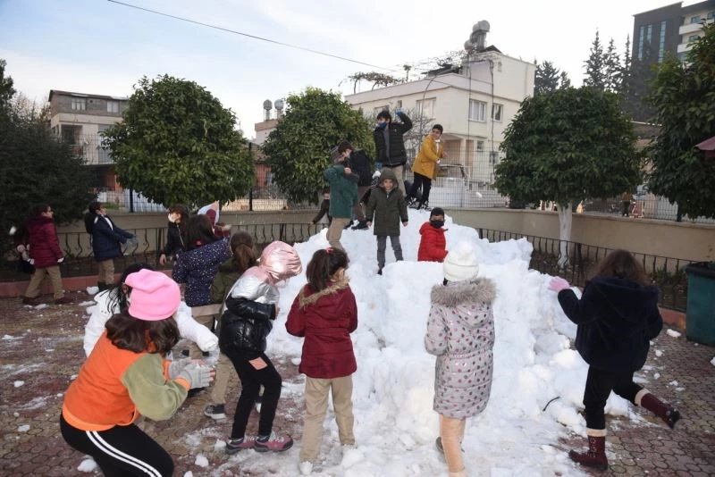 Osmaniye Belediyesi tarafından Salih Bahçeli İlkokuluna kamyonla taşınan kar, öğrencilerin neşe kaynağı oldu. Okulun bahçesindeki kar tepeciğini gören öğrenciler büyük sevinç yaşarken, kartopu oynamayı da ihmal etmediler.