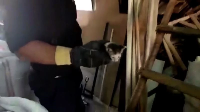Adıyaman’da bir binanın kanalizasyon borusuna giren yavru kedi 2 gün sonra itfaiyenin operasyonuyla kurtarıldı.