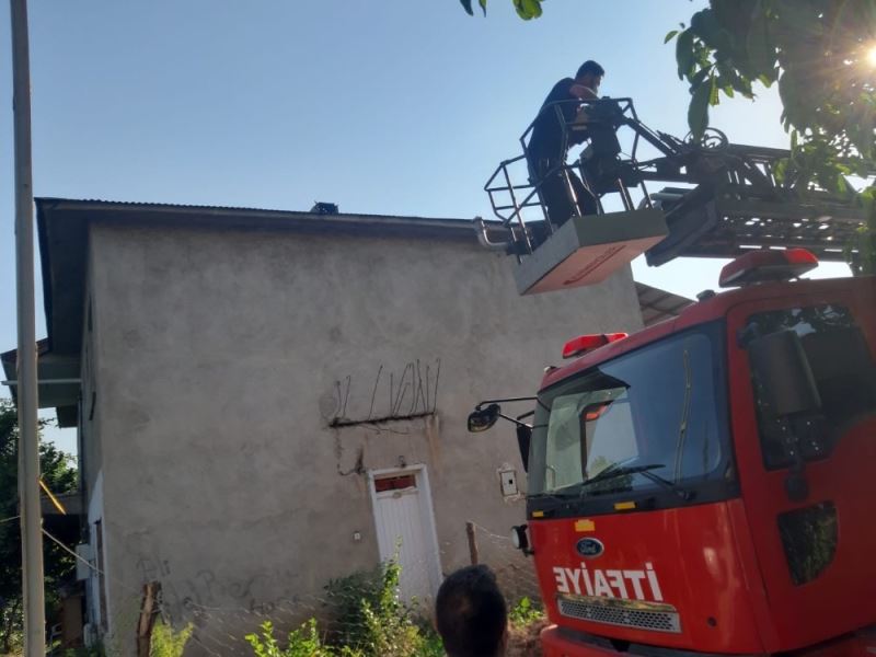 Van’ın İpekyolu ilçesinde bir evin çatısındaki uçurtma ipine takılan ebabil kuşu, itfaiye ekipleri tarafından kurtarıldı.