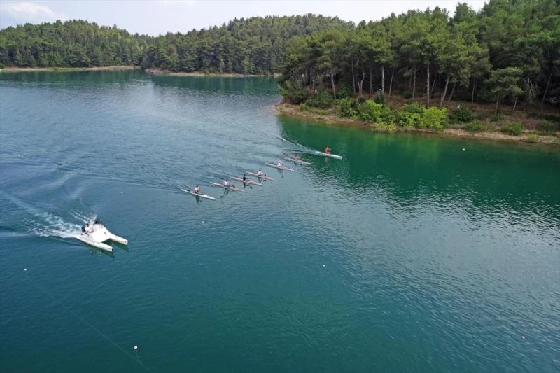 Tesis olanaklari ve iklimsel uygunluguyla öne çikan Seyhan Baraj Gölü'nde çalismalarini sürdüren sporcular, Kovid-19 öncesindeki performanslarina ulasmak için kürek çekiyor.