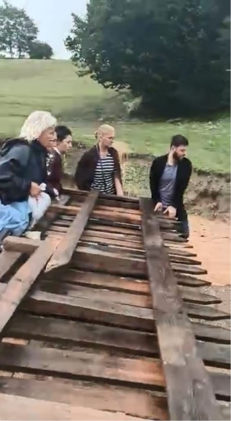 Alınan bilgiye göre, İstanbul’dan gezmek için Bursa’nın İznik ilçesine gelen 10 kişilik grup kanyonu gezdikten sonra yağmura yakalandı. Şiddetli yağış sele dönüşünce dereler taştı. Daha önce geçtikleri bölgeden geriye dönemeyen grup, bahçe çitlerinden kendilerine köprü kurarak karşıya geçtiler.