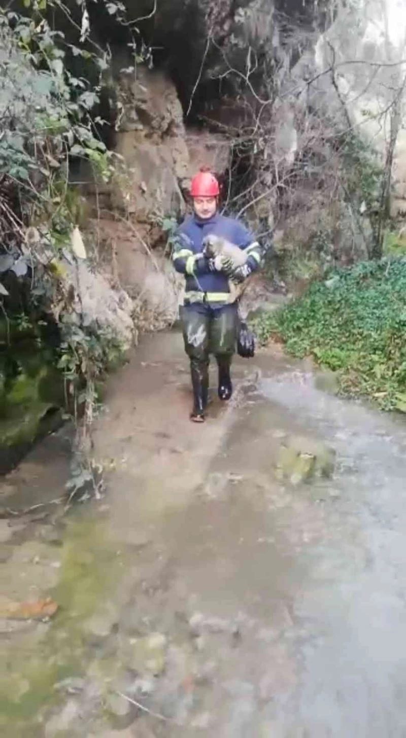 Kanyona düşen yavru köpek itfaiye ekipleri tarafından kurtarıldı