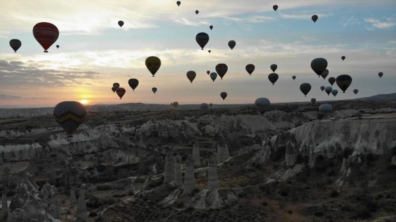 Türkiye’nin önemli turizm merkezlerinden ve sıcak hava balon turlarının başkenti Kapadokya bölgesinde sıcak hava balonları 2021 yılının ilk uçuşuyla birlikte gökyüzü ile buluştu. Nevşehir’in merkez ilçeye bağlı Göreme beldesinde sabahın ilk ışıklarıyla birlikte havalanan yaklaşık 50 balon gökyüzünde renkli görüntüler verdi. Yaklaşık 1 saat boyunca gökyüzünde kalan sıcak hava balon turlarına katılan yerli ve yabancı turistler peribacalarını kuşbakışı izlemenin keyfini yaşarken Voyager Balloons sahibi Halis Aydoğan açıklamasında yeni yılın ilk uçuşunu gerçekleştirdiklerini söyledi.
