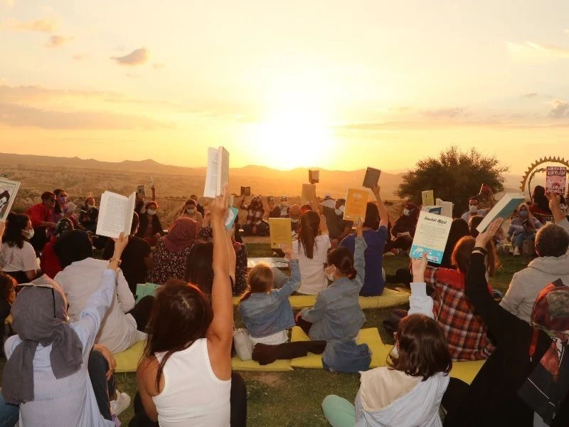 Kapadokya’da günbatımında kitap okuma etkinliği düzenlendi