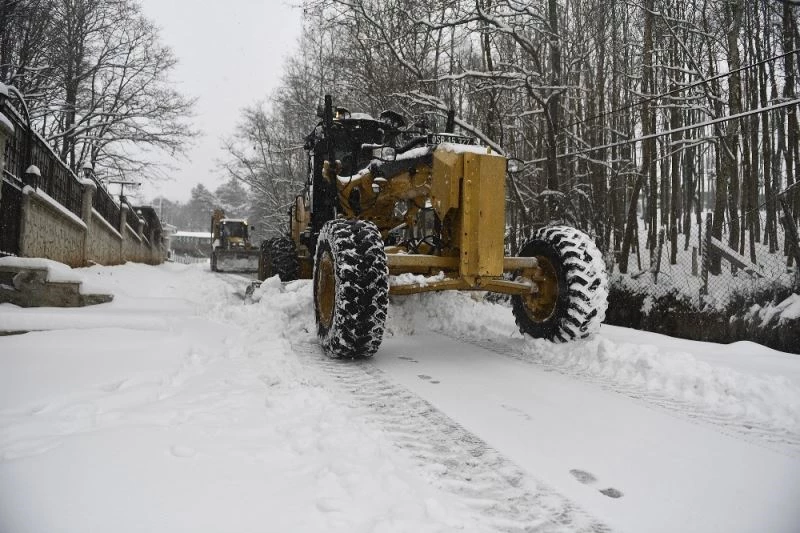 Osmangazi Belediyesi karla mücadele ekipleri, kar yağışının ardından ilçenin yüksek mahallelerinde yol açma çalışmalarına başladı.