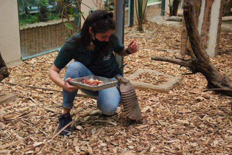 Ülke genelinde kapanma dönemine girildiği için parkın ziyaretçilere kapalı olduğunu belirten Faruk Yalçın Hayvanat Bahçesi Veteriner Hekimi Ezgi Vatansever Çelik, kapanmanın bazı hayvanlar için avantaj oluşturduğunu söyledi. Hayvanat bahçesinde hayatın devam ettiğini kaydeden Çelik, "Hayvanlarımızla her gün birlikteyiz. Bakımları, beslenmeleri tüm hızıyla devam ediyor. Yaşlanan hayvanlarımız var, hastalıkları baş gösterenler var. Onlarla her gün ilgileniyoruz. Şimdi tabii ki üreme dönemine girdik, başta kuşlarımız olmak üzere. Üreme sezonu yaklaşıyor. Bizim için kapanmanın bir avantajı da oldu. Parkın içerisi daha sessiz, sakin. Hayvanlar bunu bir avantaj olarak gördü ve daha önce yumurta, yavru almadığımız hayvanlarımızdan yavru almaya başladık. Bu bizim için bir avantaj oldu. Dezavantajı da oldu, bazı türlerimiz insan etkileşimine çok alışıklar, çok özlüyorlar. O yüzden onlar da insanların, ziyaretçilerin eksikliğini hissediyorlar. Bu süreçte bize düşen görev çok artıyor. Zenginleştirme programlarımızı, eğitim programlarımızı yoğunlaştırıyoruz. Daha fazla ilgilenmeye, bir nevi ziyaretçilerin yerini tutmaya çalışıyoruz. Kapanma gerçekleşti ama bizim için kapanma söz konusu değil. Ömrümüz burada geçiyor, hayvanlarımızlayız. Her gün, 365 gün onlarlayız. Bizim için bir kapanma dönemi olmadı. Parkın içinde hayat devam ediyor. 2 binin üzerinde hayvan burada her gün besleniyor. Altından kalkmaya çalışıyoruz. Hiçbir hayvanımızın hiçbir ihtiyacını eksik etmiyoruz. Bakım, beslenme, sağlık sorunları, onlar için her gün buradayız" dedi.