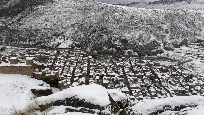 Kar altındaki şehri kuşbaşı izlemek isteyenler de Karahisar Kalesi’nin yolunu tuttu.