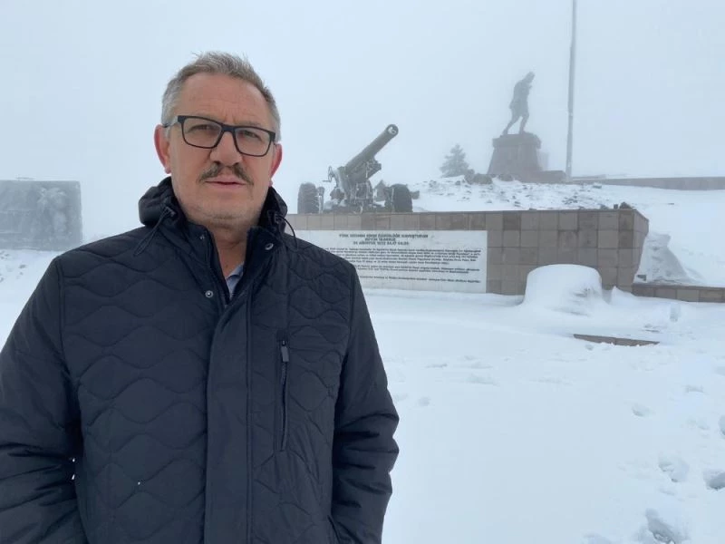 Yaklaşık yarım saatlik kar üstünde süren yolculuğundan ardından Başkan Çelik, zorlu ama bir o kadar da güzel yolculuk yaptıklarını söyledi. Gazeteciler de, tepedeki yoğun sise rağmen görüntü alarak, o tarihi manzarayı ölümsüzleştirmek istedi.