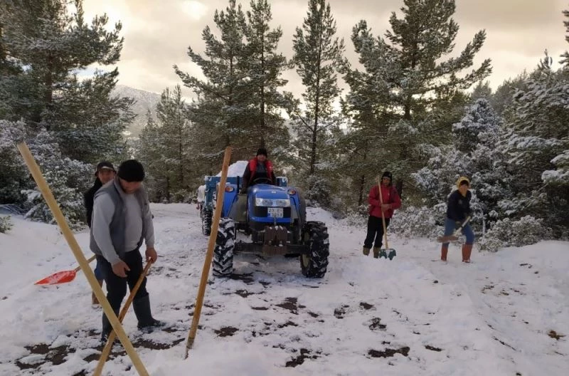 Çameli’nin yüksek rakımlı mahallesi olan Emecik Mahallesinde yaz aylarında kullanılacak karların saklanması için yüksek kesimlere çıkan mahalle sakinleri, topladıkları karları kuyulara gömdü.