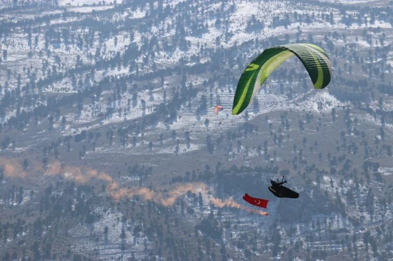 Mersin’in merkez Toroslar ilçesinin 1453 rakımlı Arslanköy Yaylası, yamaç paraşütü tutkunlarını ağırladı. Sporcular, kar manzarası eşliğinde Toroslar’ın semalarında doğanın keyfini çıkarırken, şanlı Türk Bayrağı’nı da dalgalandırdı.
