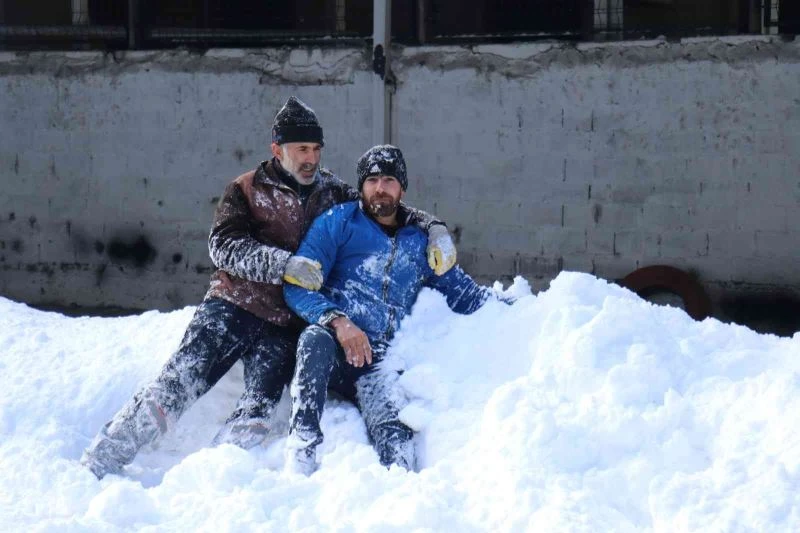 Kar temizliğini bıraktılar çocuklar gibi oyun oynadılar