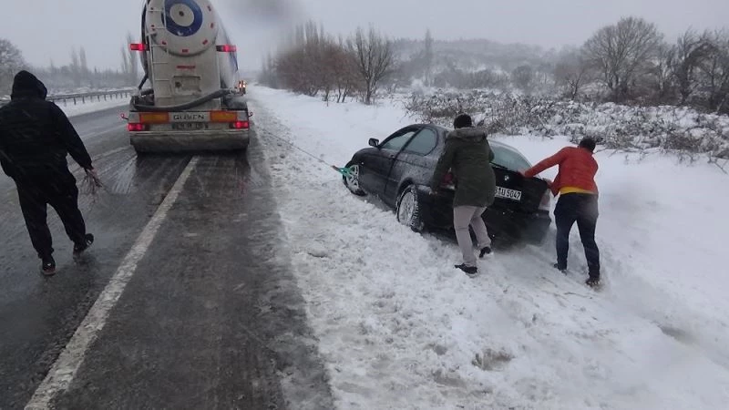 Kar yağışı Edremit-Balıkesir karayolunda çileye döndü