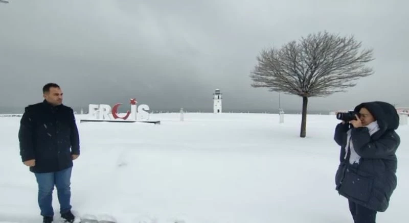 Fotoğraf sanatçısı Fırat Çiçek, yağan karın ardından arkadaşlarıyla birlikte fotoğraf çekimine çıktı. Hem hatıra fotoğrafı çekip hem de doğayı fotoğraflayan Çiçek, kar yağışı manzarasının ilçeye de ayrı bir güzellik kattığını belirtti.