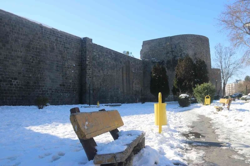 Diyarbakır’da, iki gün boyunca etkili olan kar yağışı sonrası güneş yüzünü gösterirken, tarihi surların etrafında bulunan parklar karla kaplandı. Surların etrafında kartpostallık görüntüler oluşurken vatandaşlar, etkili olan kar yağışından memnun olduklarını söyledi.