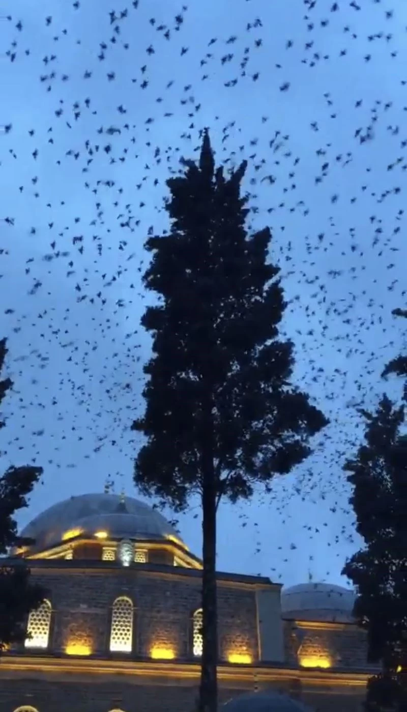 Kar yağışının habercisi sığırcık kuşlarının görsel şöleni