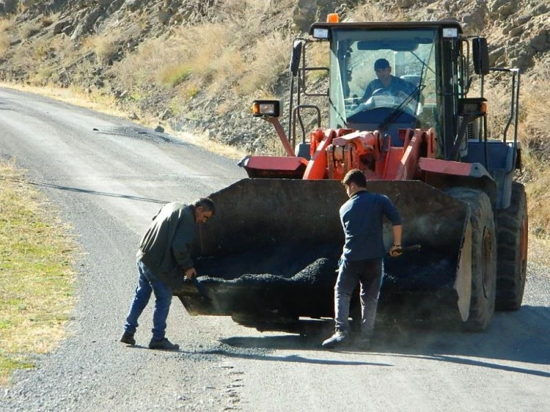 Asfaltlama makineleriyle beraber işçiler küreklerle bozulan yolları tamir ederek kış mevsimi öncesi vatandaşların daha rahat bir ulaşım sağlaması amaçlanıyor.