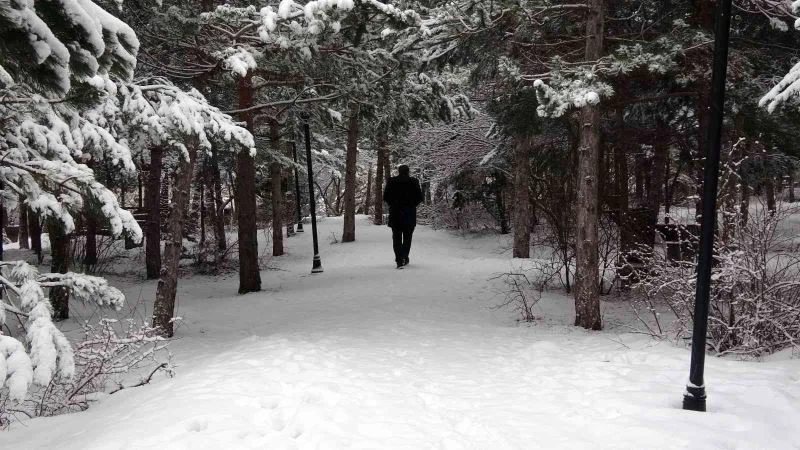 Kar, Yozgat Çamlığı Milli Parkı’nda seyrine doyumsuz görüntüler oluşturdu