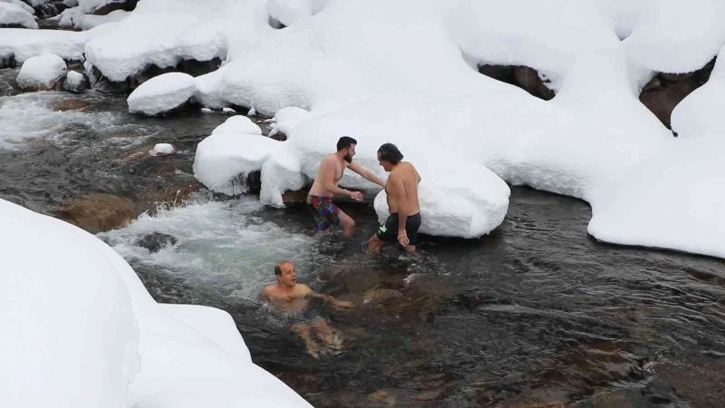 Kara aldırış etmeden Fırtına Deresi’nin buz gibi suyunda yüzdüler