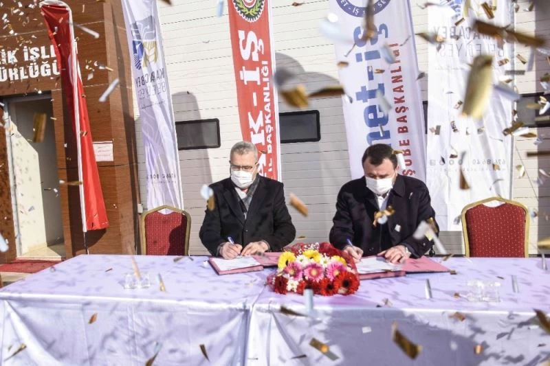 Konuşmalar sonrasında Belediye Başkanı Ali Özkan ile HAK-İş Sendikası Bursa Şube Başkanı Mustafa Yavuz birlikte yeni iş sözleşmesini alkışlar eşliğinde imzaladı.