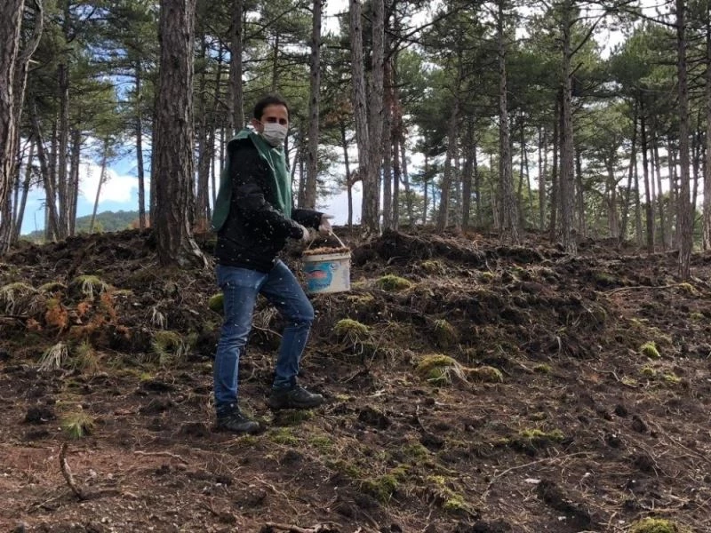 2020 yılına ait 81 No’lu Karaçam Tabi Tensil bölmesinde yapılan çalışma ile 20 hektar sahaya 150 kilo Karaçam tohumu atıldı.