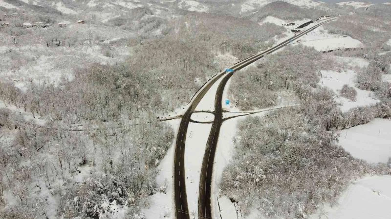 Araçlarıyla Karadeniz sahil yolunu kullanan vatandaşlar; kestane, kayın, gürgen ve meşe ağaçlarından oluşan ormanların arasında kıvrılıp uzayan karayolu ağı boyunca kar manzaralarının sunduğu görsel şölene şahit oluyor.