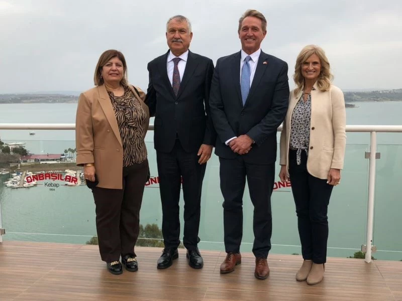 Eşi Cherly Flake ile birlikte Başkan Karalar ve eşi Nuray Karalar’ı ziyaret eden Jeff Flake, kentle ilgili bilgi aldı.