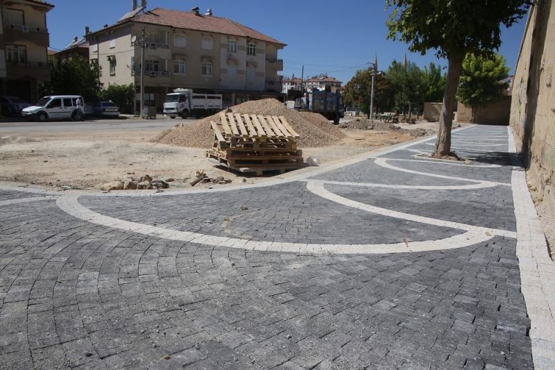 Karaman Belediyesi kaleyi çevreleyen kaldırımları yeniliyor