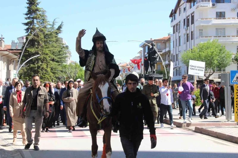 Atatürk Anıtına çelenk koyulması ve Yunus Emre Türbesinin ziyaret edilmesiyle başlayan etkinlikler, saat 09.30’da Tren Garı önünde başlayan ve Atatürk Parkı’nda son bulan şölen yürüyüşüyle devam etti. Yürüyüşe, Karaman Valisi Mehmet Alpaslan Işık, AK Parti Karaman Milletvekili Recep Şeker, CHP Karaman ve Niğde Milletvekilleri İsmail Atakan Ünver ve Ömer Fethi Gürer, Karaman Belediye Başkanı Savaş Kalaycı, Azerbaycan, Kazakistan, Kırgızistan ve Özbekistan’dan milletvekilleri, siyasi parti temsilcileri, daire müdürleri, öğrenciler ve davetliler katıldı. Kortej yürüyüşünde Mustafa Kemal Atatürk ve Karamanoğlu Mehmet Bey’in at üzerinde temsili olarak sokaktaki halkı selamlaması ile Yunus Emre, Hz. Mevlana, Mümine Hatun ve Kazım Karabekir Paşa’nın da canlandırılması kutlamalara renk kattı. Karamanoğlu Mehmet Bey’in fermanı da yine at üzerinde okundu. İsmet Paşa Caddesi üzerinde Jandarma Genel Komutanlığı Bandosu eşliğinde yapılan geçit töreninin ardından kutlamalara katılanlar hep birlikte Atatürk Parkına geçti. Burada Karaman Valisi Mehmet Alpaslan Işık ve Belediye Başkanı Savaş Kalaycı tarafından Atatürk Anıtına çelenk bırakıldı. Daha sonra saygı duruşunda bulunularak İstiklal Marşı okundu. Kutlamalar Yunus Emre Türbesinin ziyaret edilerek dua edilmesiyle sona erdi.