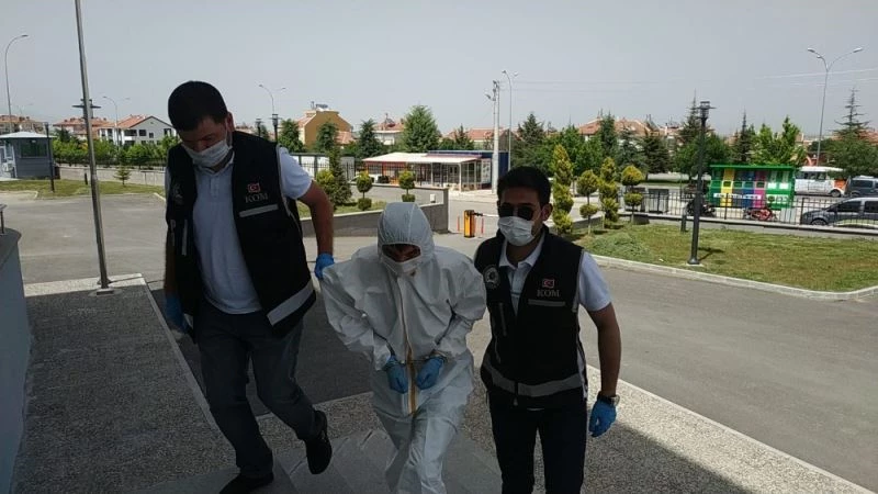 Karaman’da gözaltına alınan silah kaçakçısı adliyeye özel koruyucu kıyafetle getirildi
