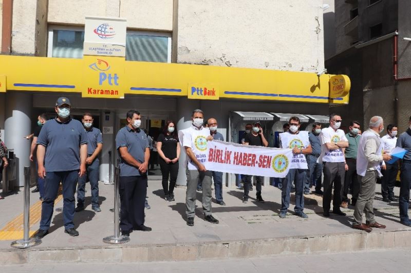 Birlik Haber Sen Karaman İl Başkanı Mustafa Şentürkoğlu yaptığı açıklamada, "PTT çalışanlarına yönelik yapılan şiddeti kesinlikle kabul etmiyoruz. Hafta içi şubede hafta sonu merkez müdürlüğünde görev yapan arkadaşımız Onur Kızıl görevini canla başla kurallara uygun yapmak isterken 20 Haziran Cumartesi günü maalesef darp edilmiştir. Bu içinde bulunduğumuz pandemi döneminde çoğu memurumuz dönüşümlü çalışırken, postacılarımız daha yoğun bir şekilde yaz kış demeden kapı kapı dolaşarak, hiç yüksünmeden gözlediğimiz haberleri ayağımıza kadar getiren cefalı bir mesleğin neferlerdir. Postacı, bazen hasret yüklü mektupları bize ulaştıran bir müjdeci, bazen hüzün dolu haberleri paylaştığımız bir dert ortağı olur bizim için. Taşıdığı zarfın içinde ne olduğunu bilmeden sevince ya da kedere ortak olan postacılarımız hak ettiği vefayı vatandaşlarımızdan göremezken aksine hizmet ettiği vatandaşların tehdit, küfür ve kötü muamelelerine maruz kalmaktadır. Vatandaşa hizmet etmenin, görevini dürüstçe ve layıkıyla yerine getirmenin karşılığı bu mu olmalı? Bu tutum böyle devam ettikçe bu olay ilk olmadığı gibi son da olmayacaktır ama biz Birlik Haber Sen olarak arkadaşımızın uğradığı insanlık dışı saldırıya sessiz kalmayıp, bu gidişata artık bir dur diyor, bu yaşanan olayın yasal takipçisi olacağımızı belirtmek istiyoruz. Bu süreçte her türlü platformda arkadaşımızın yanında olacağız ve hakkını arayacağız. Biz Birlik Haber Sen olarak meslektaşlarım ve hizmet etmekten şeref duyduğumuz kıymetli vatandaşlarımız adına bu çirkin saldırıyı esefle kınıyoruz" dedi.
