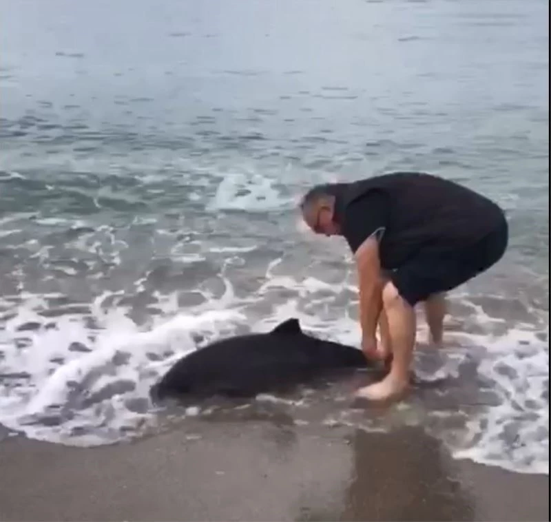 Sinop’un Türkeli ilçesinde kıyıya vuran yunusu fark eden bir vatandaş, onu tekrar denize bırakarak hayatı döndürdü.