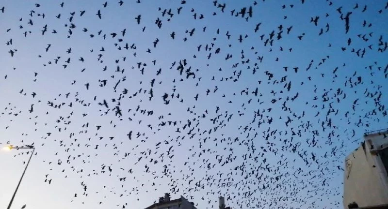 Tekirdağ’ın Hayrabolu ilçesinde karga sürüsü gökyüzünü istila etti.