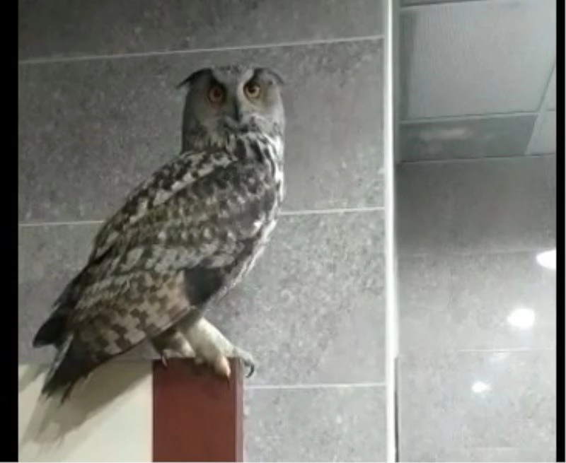 Hakkari’de kargaların kovaladığı baykuş valiliğe sığındı.
