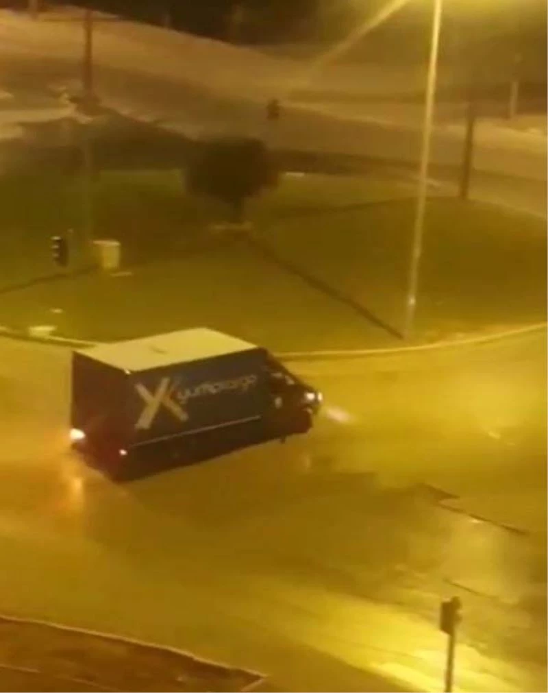 Antalya’da üzerinde Yurtiçi Kargo yazılı kamyonetin sürücüsü, gece saatlerinde dakikalarca kamyonetle drift yaptı. O anlar, gece uykusundan uyanan çevredekilerin cep telefonu kamerasına yansıdı.