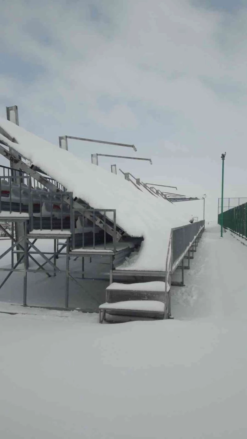 Kırşehir’in Akpınar ilçesinde yoğun karın ağırlığına dayanamayan seyirci tribününün çatısı çöktü.