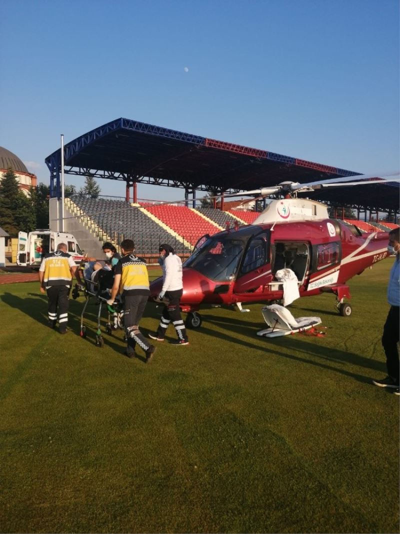 İstanbul Fatih Sultan Mehmet Eğitim ve Araştırma Hastanesinde karın zarı ameliyatı geçiren E. G. isimli hasta Hava Ambulansı ile Düzce’ye getirilerek Düzce Üniversitesi Tıp Fakültesine sevk edildi.