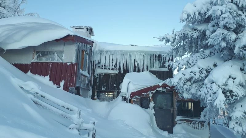 Sakarya’da kar yağışı sonrasında Hendek ilçesinin bin 722 rakımlı Dikmen Yaylası’nda karlar altında kalan evler ve doğa, seyrine doyumsuz manzaralar oluşturdu.